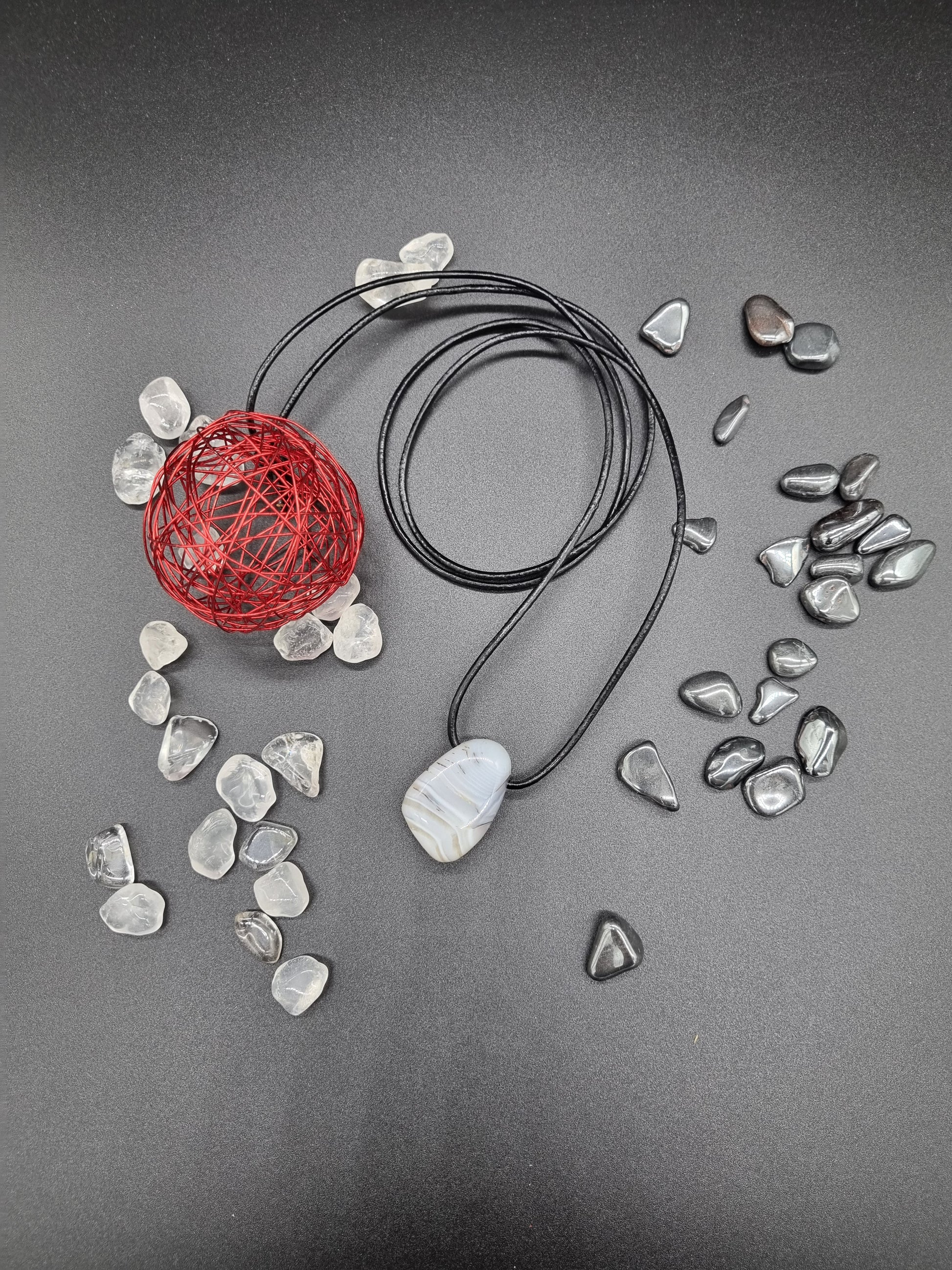 Er sollte einmal pro Monat unter fließendem Wasser entladen und in der Sonne oder über Nacht mit einem Bergkristall aufgeladen werden. Ketten sollten einmal pro Monat über Nacht mit Hämatit Trommelsteinen entladen werden.