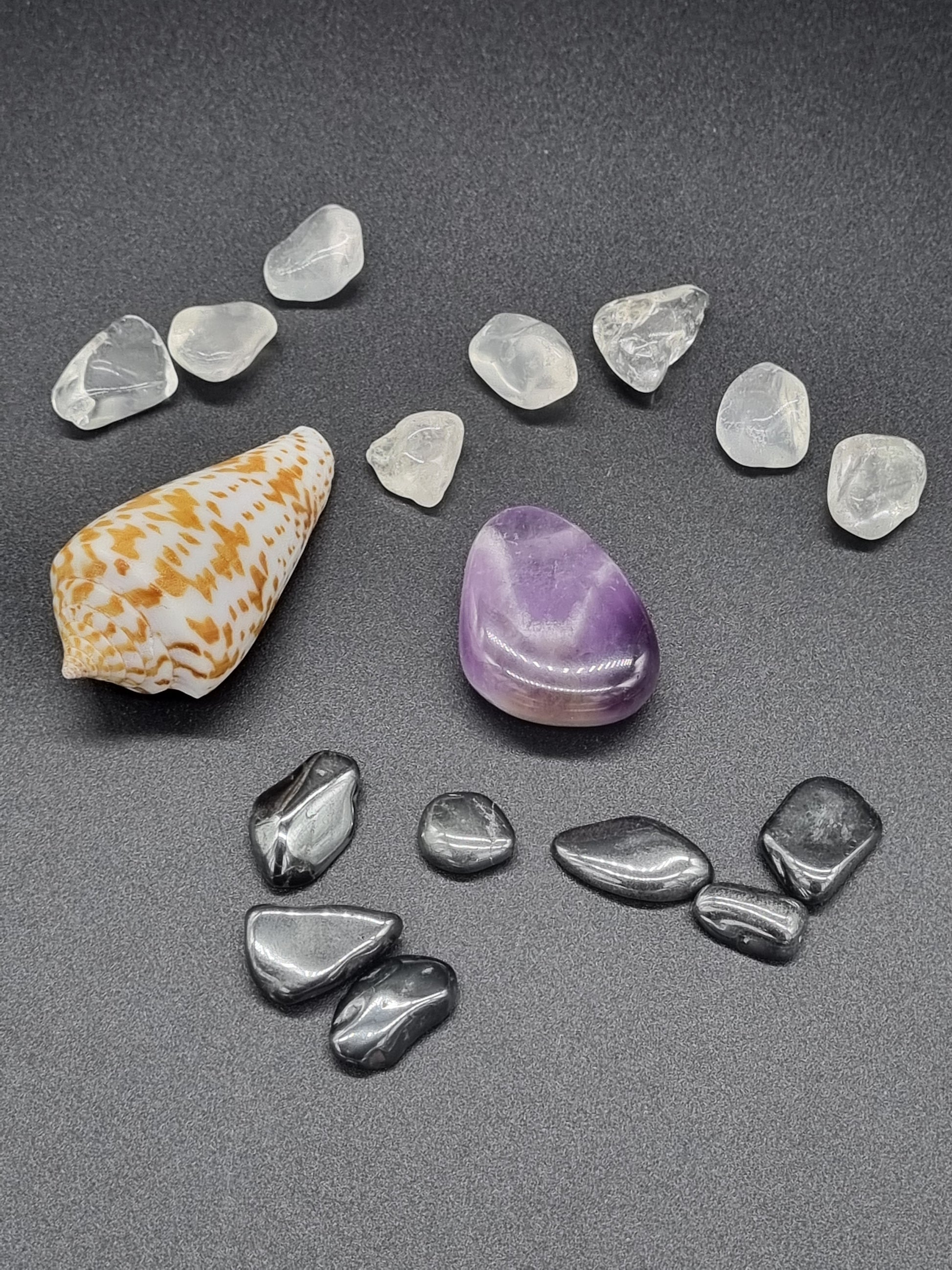 Er sollte einmal pro Monat oder nach jeder direkten Verwendung auf der Haut (bei Hautbeschwerden) unter fließendem lauwarmem Wasser entladen und in einer Amethystdruse aufgeladen werden. Ketten sollten einmal pro Monat über Nacht mit Hämatit-Trommelsteinen entladen werden. Man darf ihn jedoch niemals in der Sonne aufladen, da er durch direkten Einfluss von UV-Strahlen seine Farbe verliert.