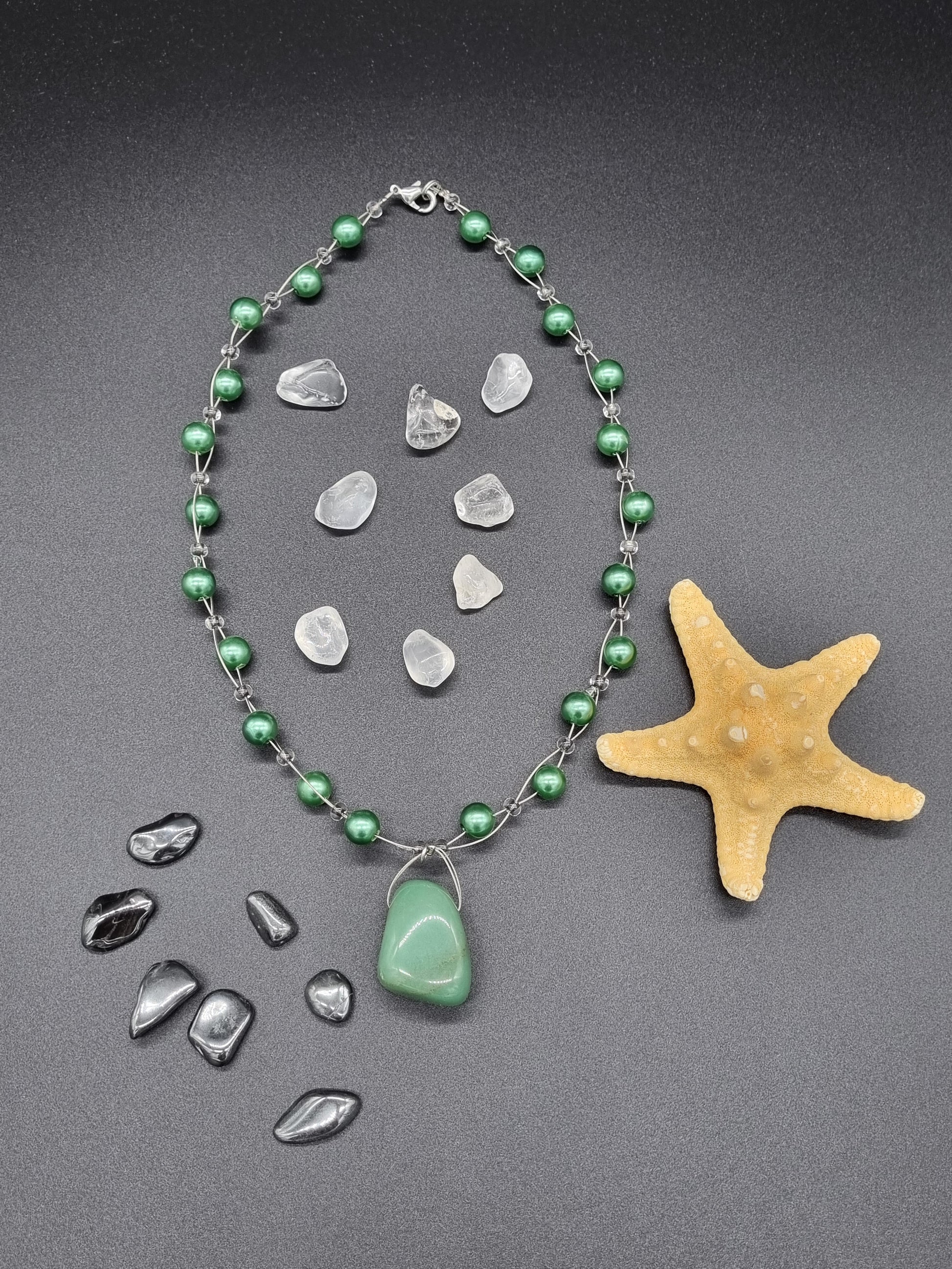 Aventurin - Stein mit Glas-Perlen-Kette, Größe ca. 3cm